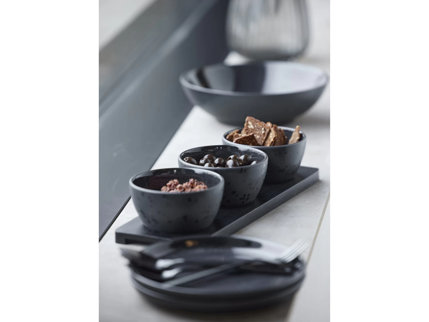 Kuchengabel aus hübschem schwarzem Stahl mit mattem Finish und eingraviertem BITZ-Logo auf der Rückseite. Die Kuchengabel ist wunderschön und stilvoll und passt zu jeder Tischdekoration, wenn Kuchen und Desserts serviert werden.