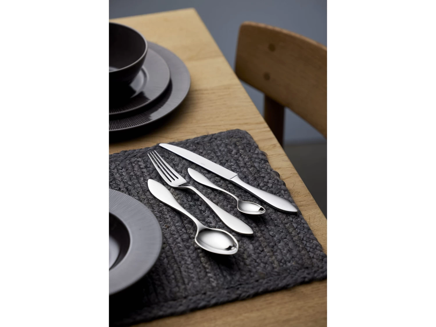 Mit seinen klaren Linien und der kurvigen Eleganz greift das Besteck Indra das typische funktionale Designdenken von Ingegerd Råman auf. Die Form des Bestecks verbindet das Schöne und Ästhetische mit Schlichtheit und Funktion. Indra besticht durch eine gute Größe und appelliert mit seiner raffinierten Balance sowohl an das Auge als auch an die Hand. Hergestellt aus hochglanzpoliertem Edelstahl.