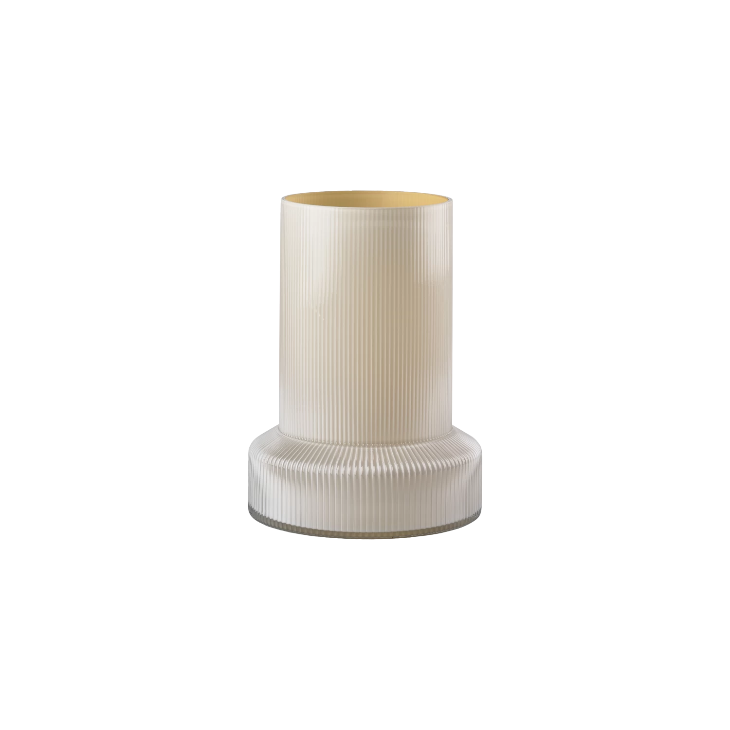 Hübsche mundgeblasene und handgefertigte Vase aus drei Glasschichten. Die äußere Schicht ist Klarglas, die mittlere Schicht ist honigfarben und die innere Schicht besteht aus weißem Glas. Stellen Sie eine LED-Kerze in die Vase – durch die Kombination der drei Glasfarben entsteht ein fantastisch weiches Licht. D 19 x H 34 cm. Mit warmem Wasser reinigen und dann mit einem weichen Tuch abtrocknen.
