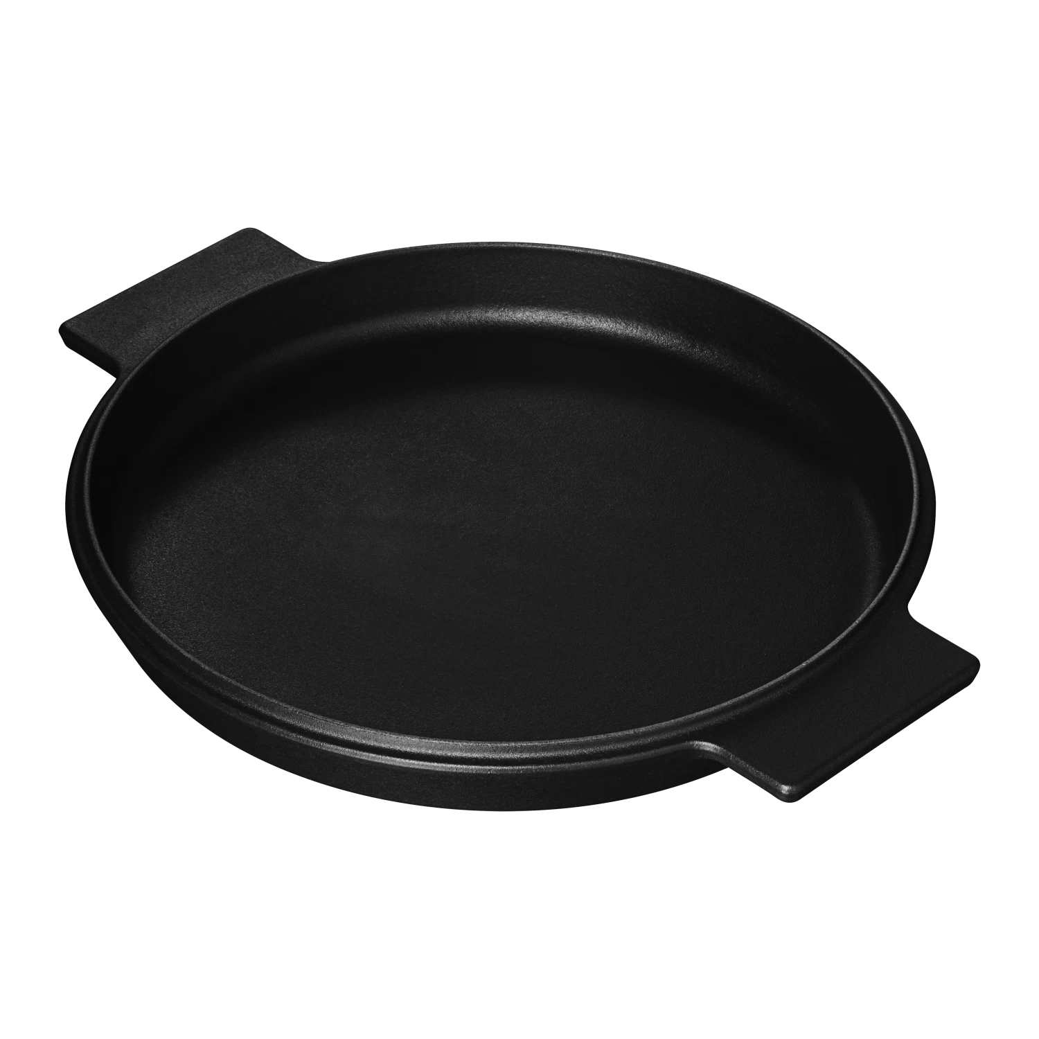 Gusseisen hält die Wärme besonders lange, sodass das Essen entweder mit der Nachwärme fertig gekocht oder auf dem Esstisch warm gehalten werden kann. Die Bratschale hat einen 5,5 mm dicken Boden, der für eine gute und gleichmäßige Wärmeverteilung sorgt. Sie ist auch mit guten Griffen ausgestattet, die einen festen Halt bieten, wenn die Bratschale sicher hochgehoben werden soll.