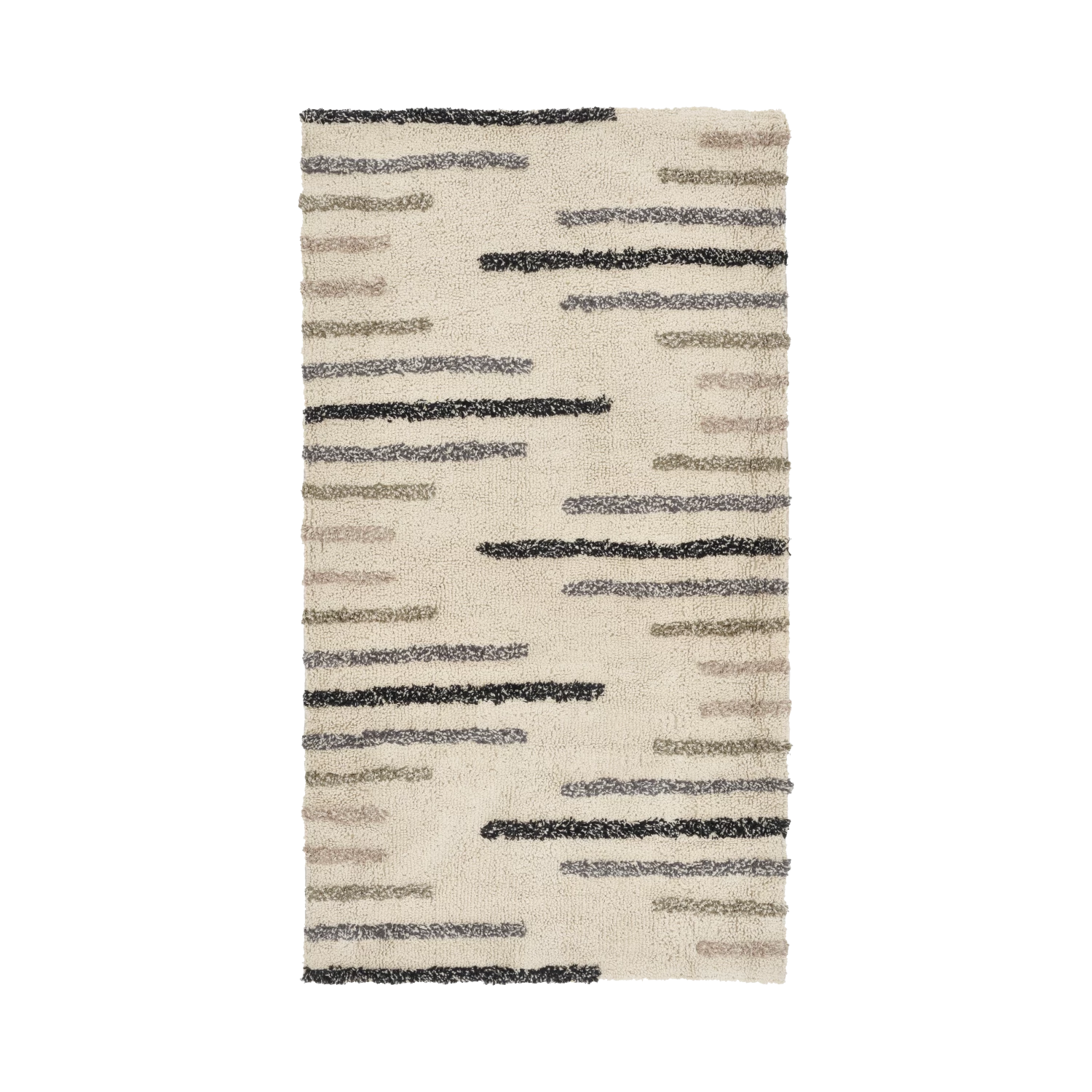 Der handgetuftete Tactile-Teppich mit einer schlichten Hochflor-Konstruktion ist der Schlüssel für einen weichen Look in der Wohnung. Denken Sie daran, gemütliche Textilien mit einer taktilen Oberfläche zu verwenden, um der Einrichtung eine multisensorische Note zu geben. Die matten Fasern und die subtilen Ecru- und Grautöne sorgen für eine raffinierte Gemütlichkeit, die unverzichtbar ist, wenn man die typisch skandinavische Ästhetik und den typisch skandinavischen Stil erzielen möchte.