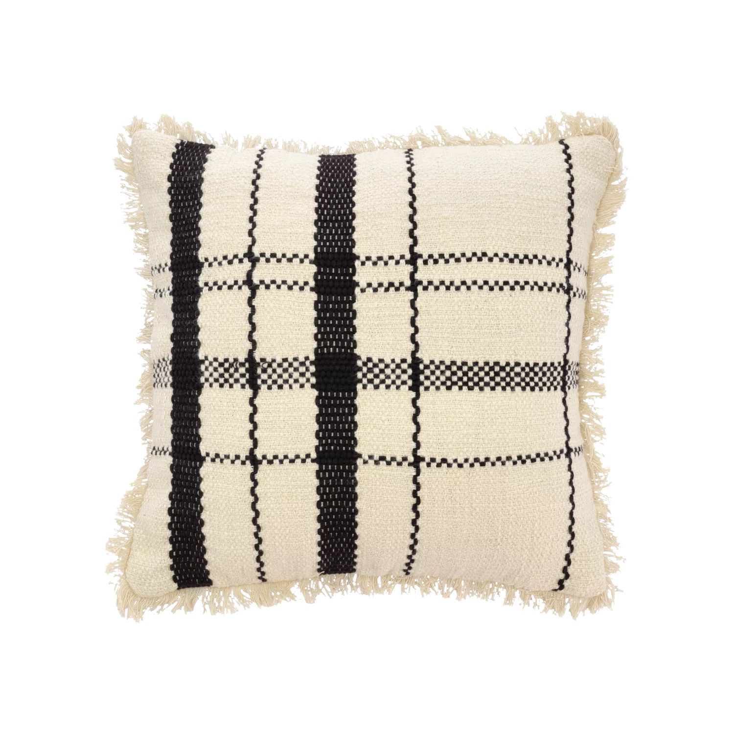Das Kissen Urban ist eine raffinierte Interpretation zeitloser Karomuster. Das Muster ist in einen kräftigen Slub-Garnstoff mit Fransen an den Seiten gewebt. Die markanten Karos und neutralen Farben bieten ein hohes Maß an minimalistischer Ästhetik.