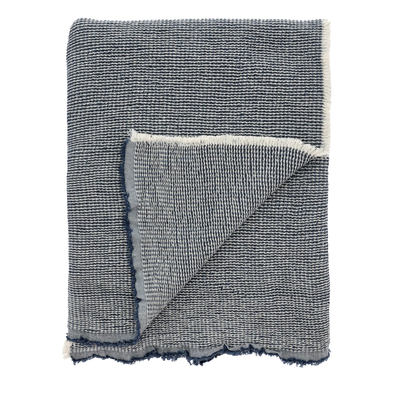 Kuscheliges Plaid mit kurzen Fransen an allen Seiten in einer interessanten gewaffelten, garnfarbenen Qualität. Das Plaid ist zweifarbig, was fast schon für einen kleinkarierten Look sorgt. Perfekt für kühle Sommerabende, an denen man so lange wie möglich draußen sitzen möchte.