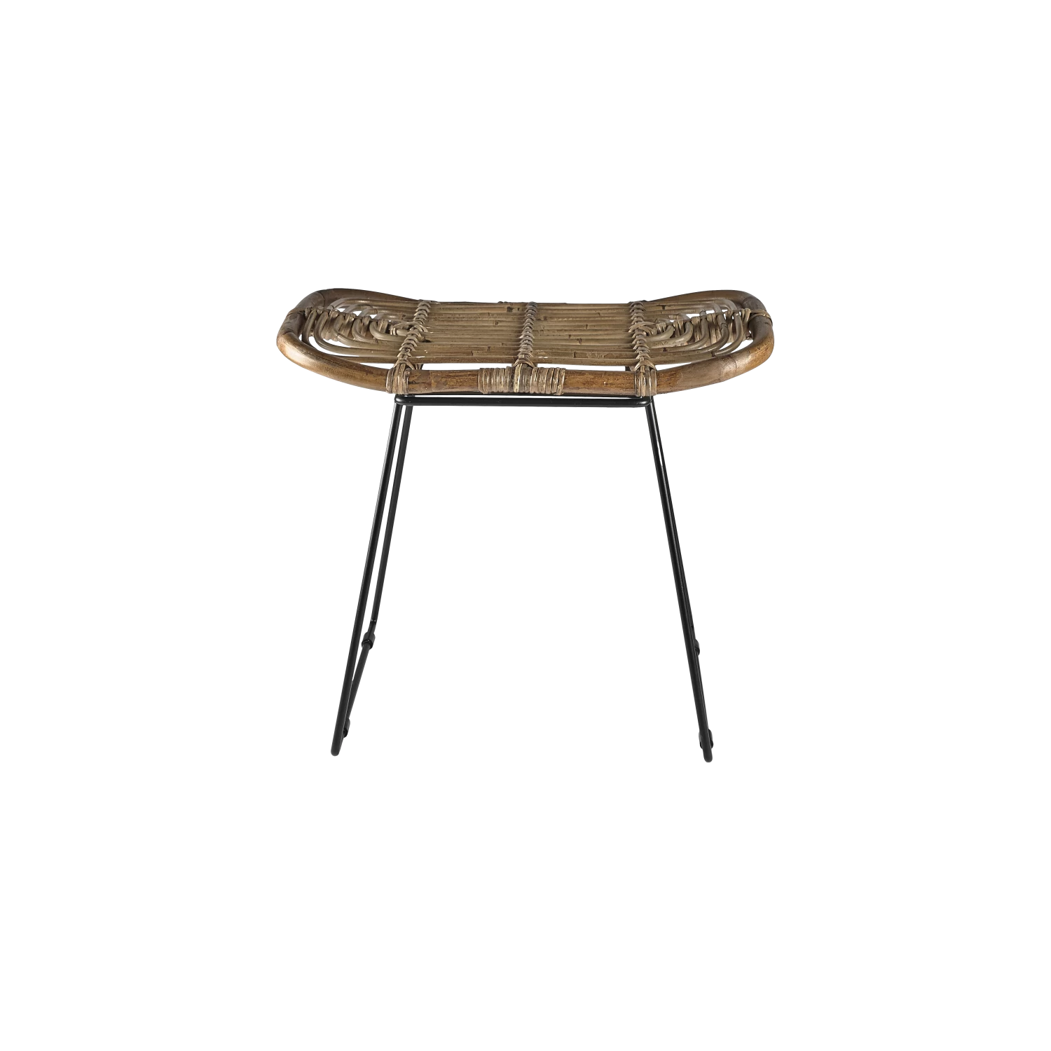 Mit dem hübschen und natürlichen Rattan holt der Hocker die Natur in die Wohnung. Er kann ohne weiteres alleine stehen, aber sieht auch toll zusammen mit einem passenden Lounge-Sessel aus. L 53 cm, B 33 cm, H 47 cm.