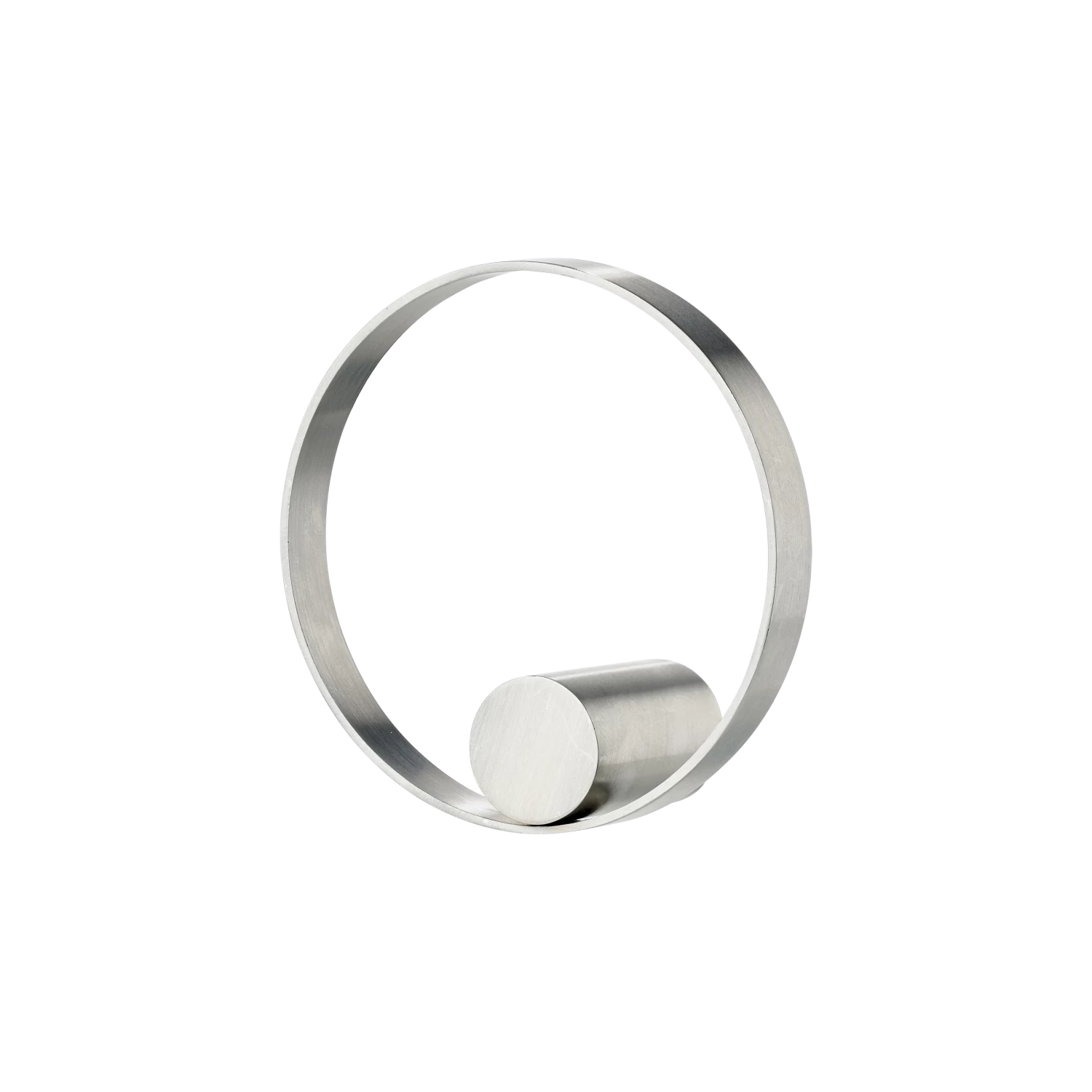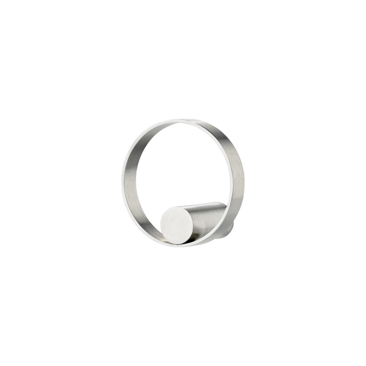 Das Dekorative Haken Hooked Onm Rings, kann mit seinem Multifunktionalen Design auf verschiedene Arten verwendet werden, Werfen sie Den Bademantel, das Handtuch oder Ihrer Mäntel über den Ring. Oder ziehen Sie z.B. Tücher oder Schals durch. Der Haken besteht aus gebürstete Stahl. Durchmesser 5 cm.
