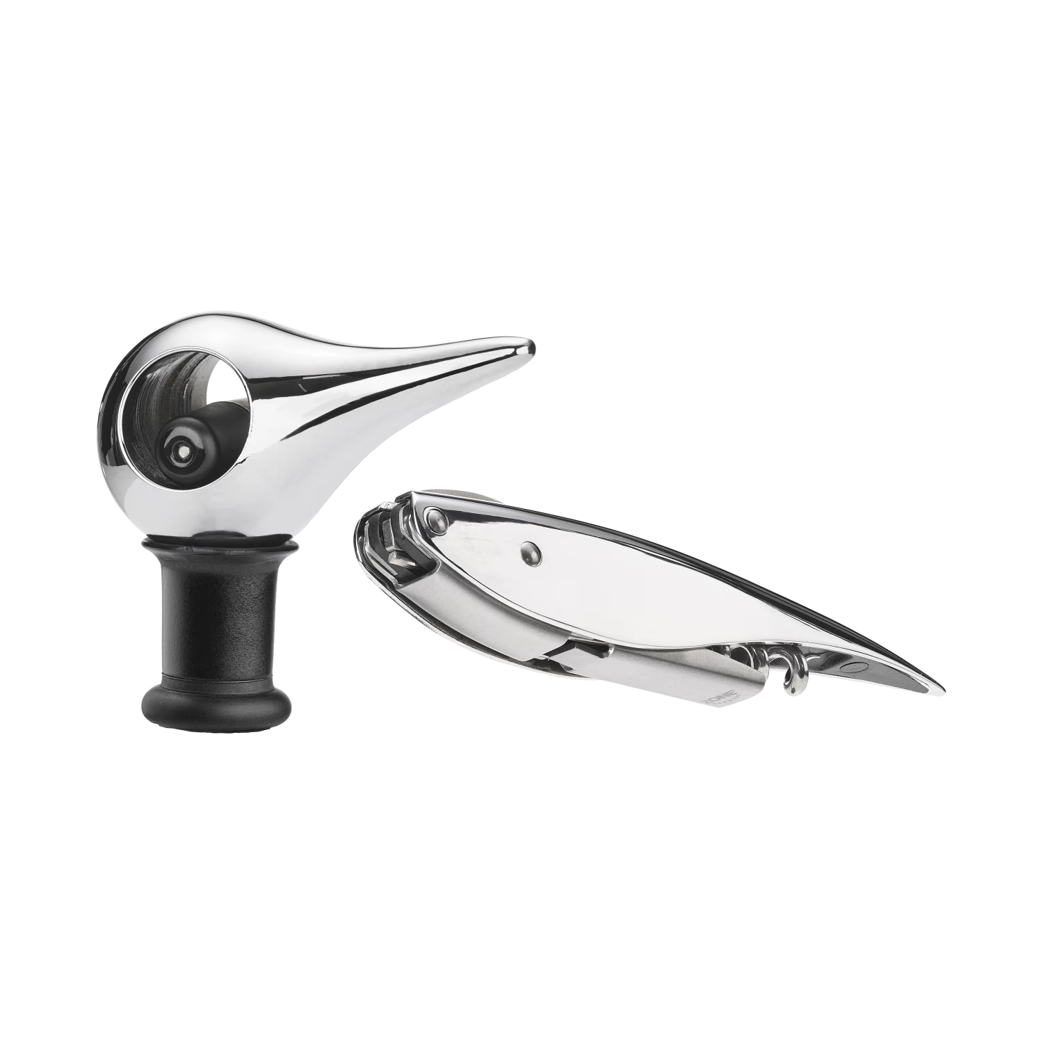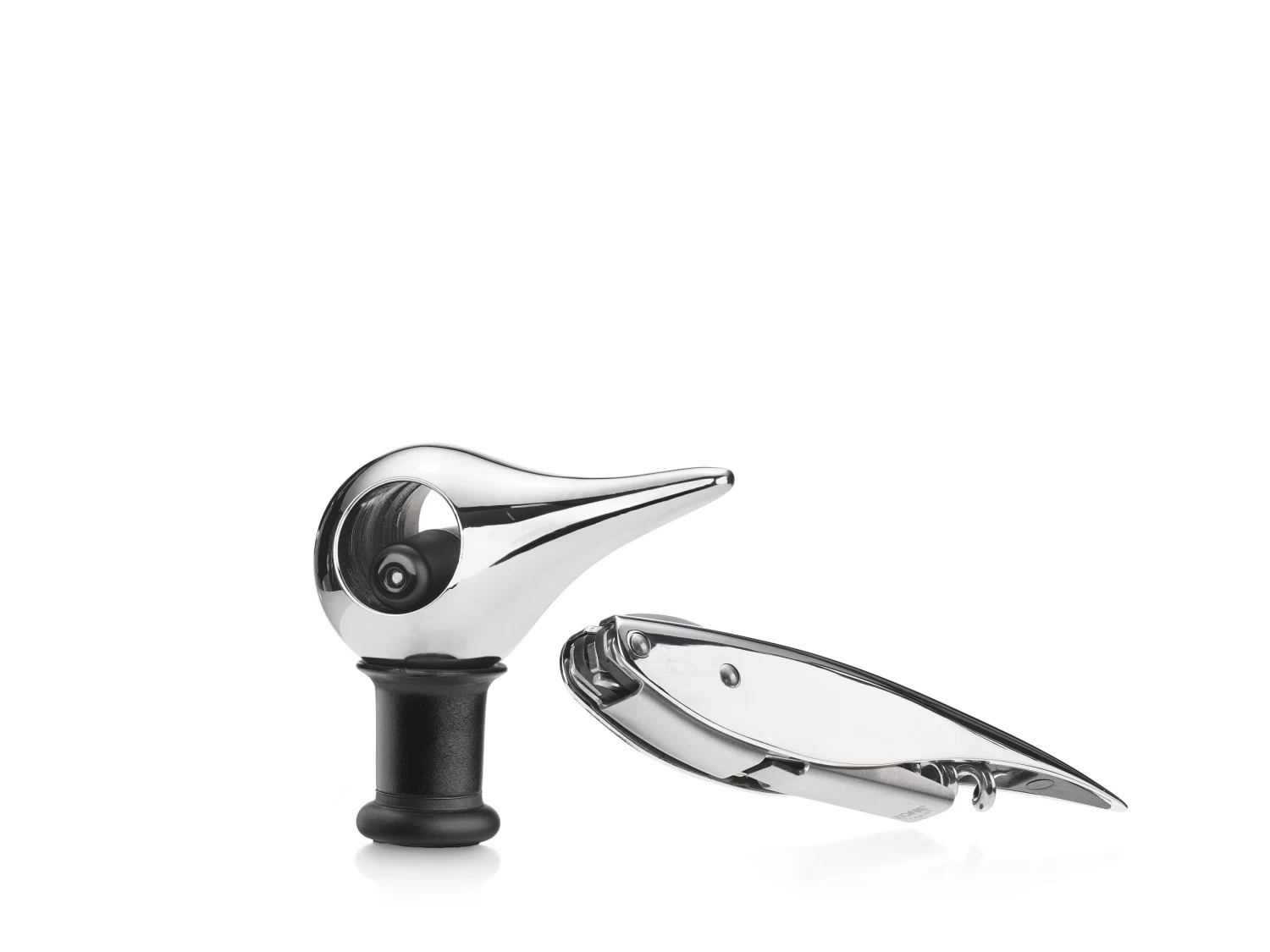 Das elegante Weinset von Zone besteht aus einem Bird Weinverschluss und einem Feather Korkenzieher. Feather ist eine tolle Interpretation eines Kellnerwerkzeugs, sozusagen ein Klassiker in neuen Kleidern. Feather hat einen eingebauten Folienschneider und einen Öffner, und der biegsame Arm macht es einfach, die Flasche in zwei Schritten zu öffnen, ohne viel Kraft aufwenden zu müssen. Kann leicht zusammengeklappt und z. B. zu einem Picknick mitgenommen werden. Das elegante figurative Design des Bird Weinverschlusses hat eine geniale Funktion. Setzen Sie den Verschluss auf die offene Weinflasche, wippen Sie den Schnabel des Vogels zur anderen Seite und Sie haben eine völlig dicht schließende Flasche. Die Flasche kann sogar im Kühlschrank liegen, bis Sie wieder Lust auf ein Glas Wein haben. Design: Mencke und Vagnby.
