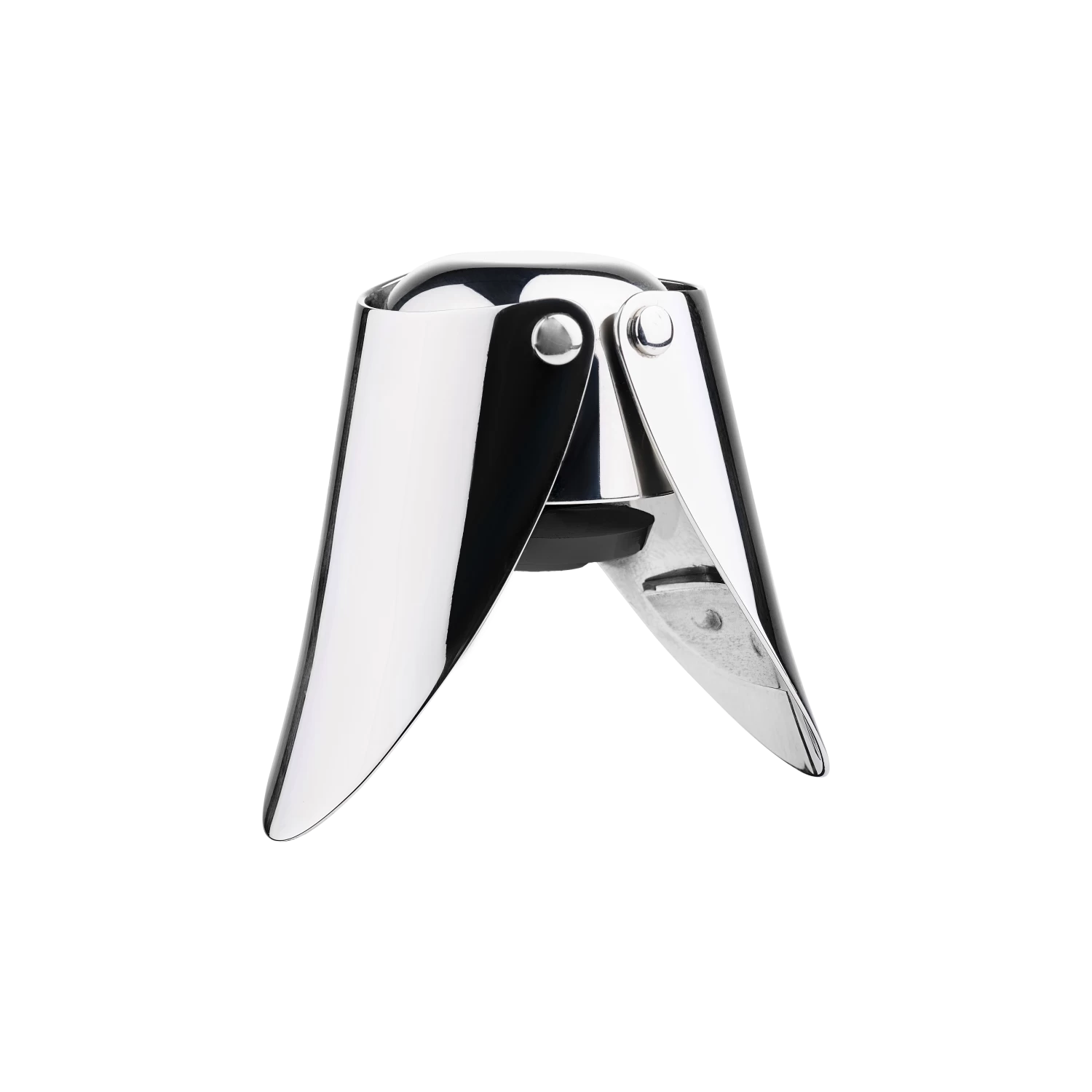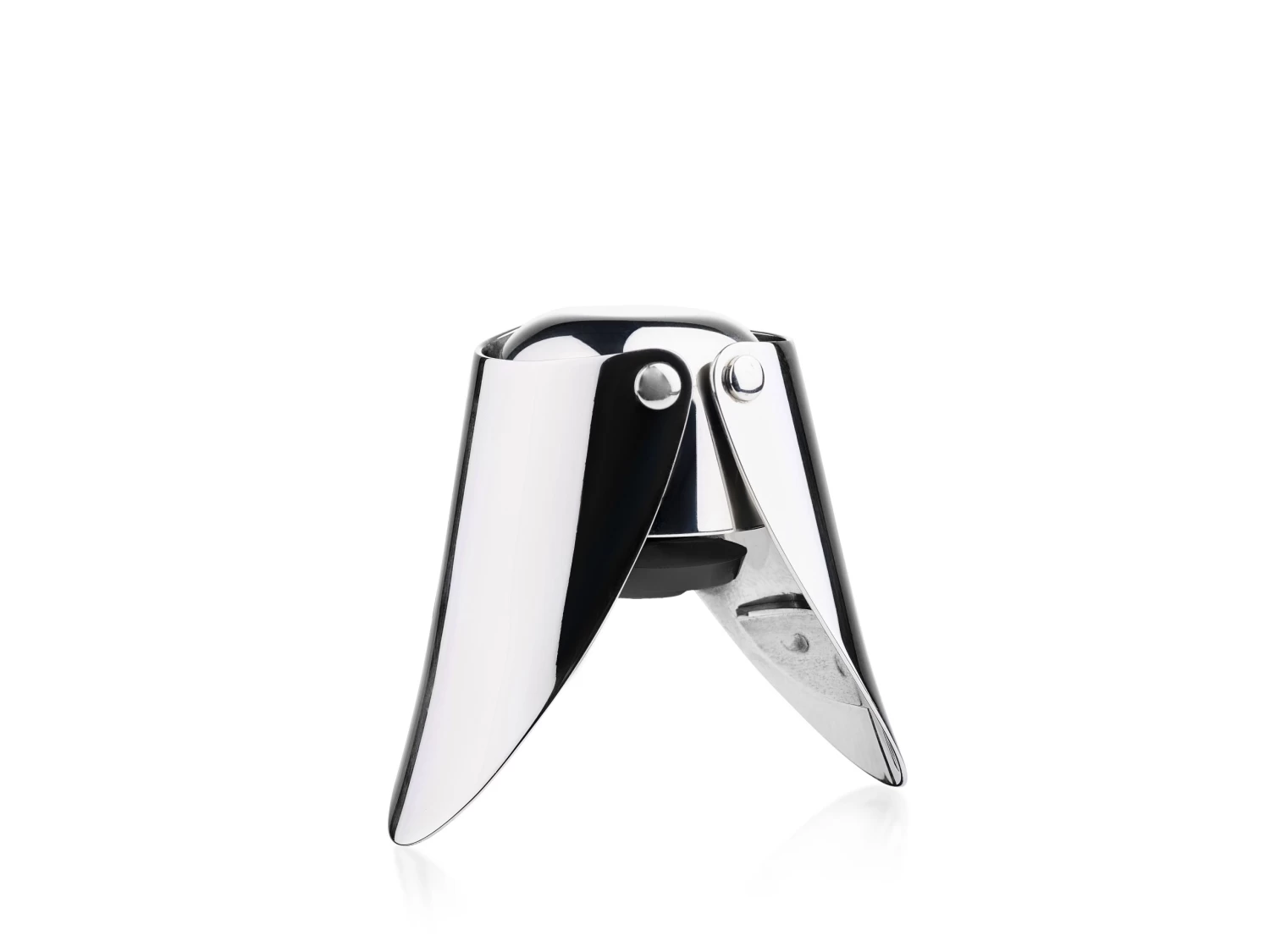 Der Champagner-Pfropfen ’Wings’ verbindet Form und Funktion in einem schlichten, aber originalen Design aus glänzendem Edelstahl. Stecken Sie den Pfropfen auf die Flasche, klappen Sie die Flügel herunter, und genießen Sie die edlen Tropfen, ohne dass die perlende Kohlensäure verschwindet.